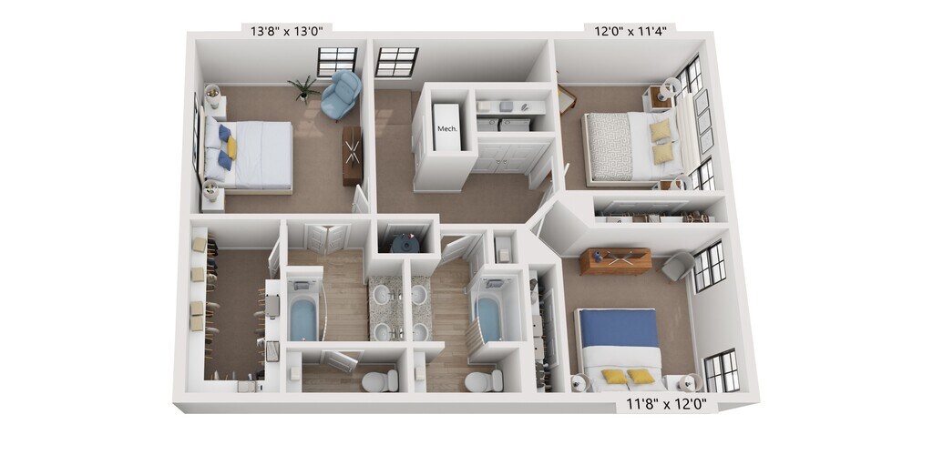 Modelo de apartamento: BerchfieldDesde $1,5292 Dormitorios, 1 Baño, 1598 sq ftDisponible Ahora![]()