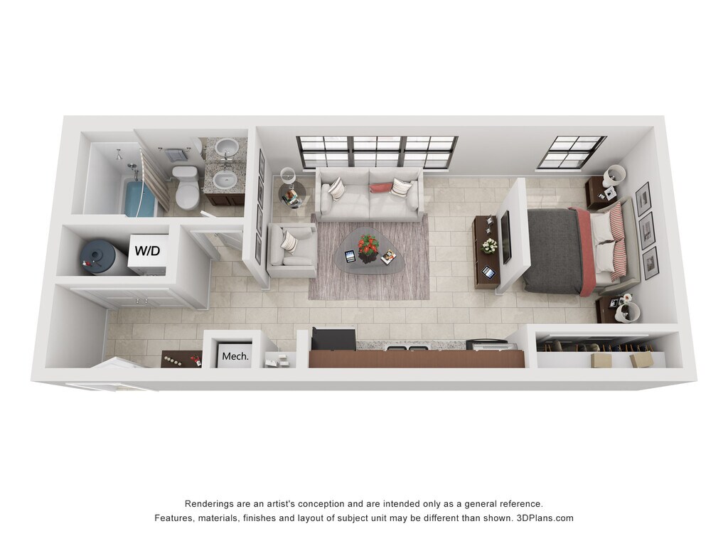 Estudio, 1 Baño, 501 pies²Galería del Modelo