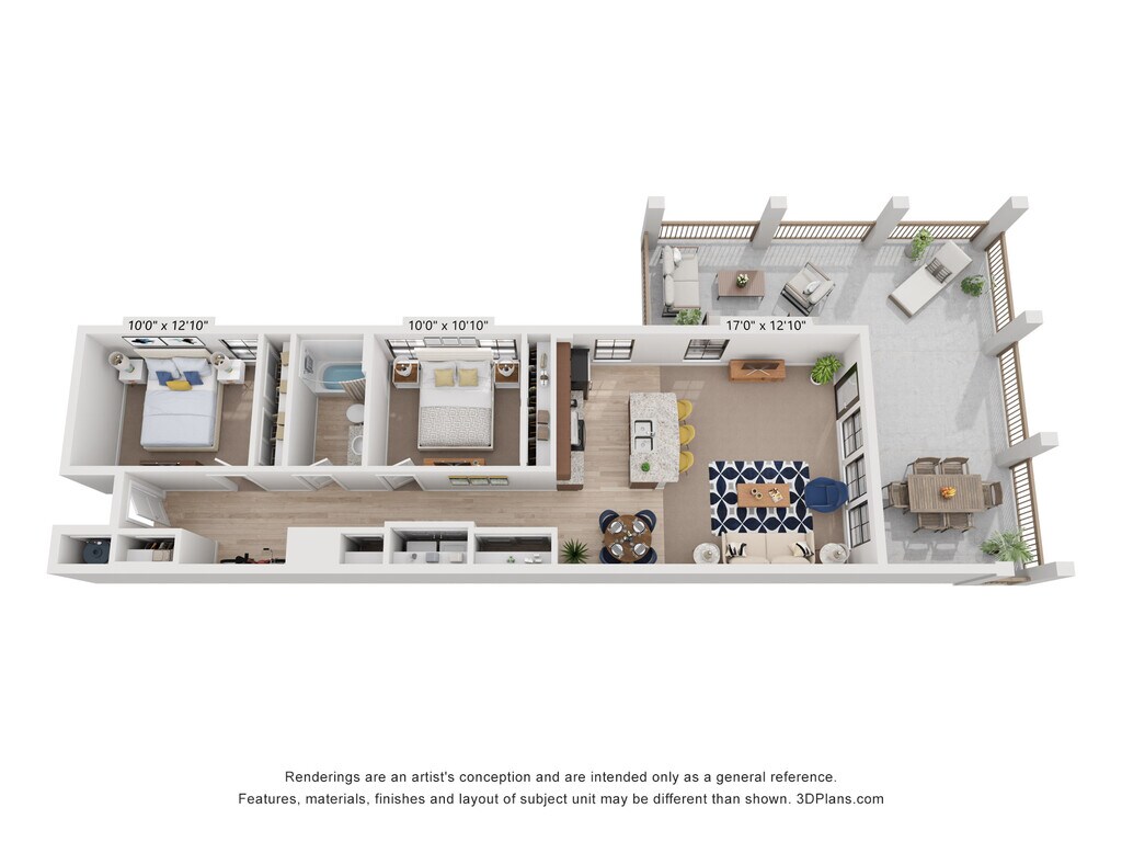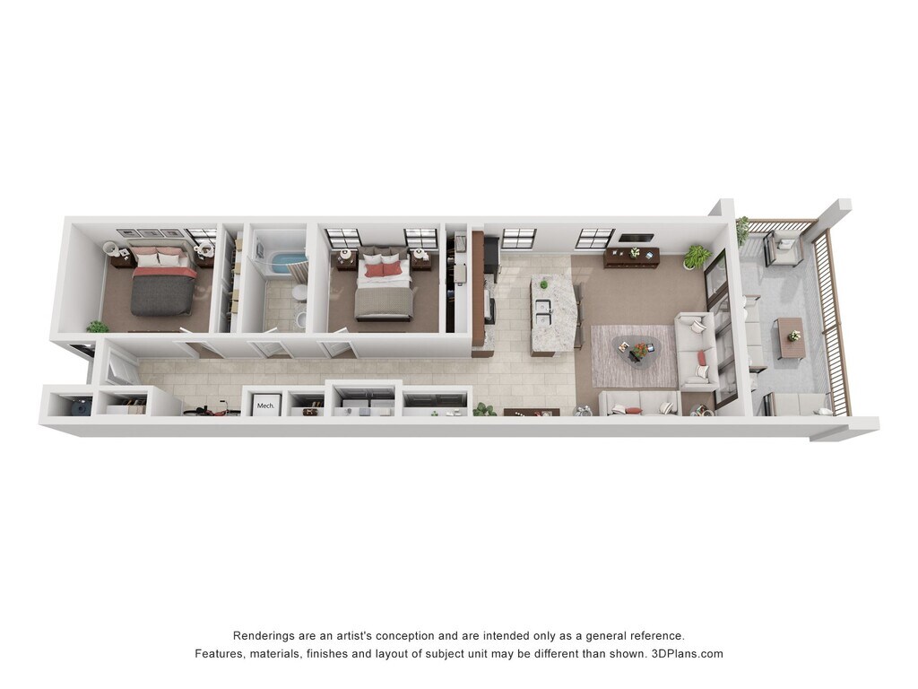 2 Dormitorios, 1 Baño, 1190 pies²Disponible AhoraGalería del Modelo