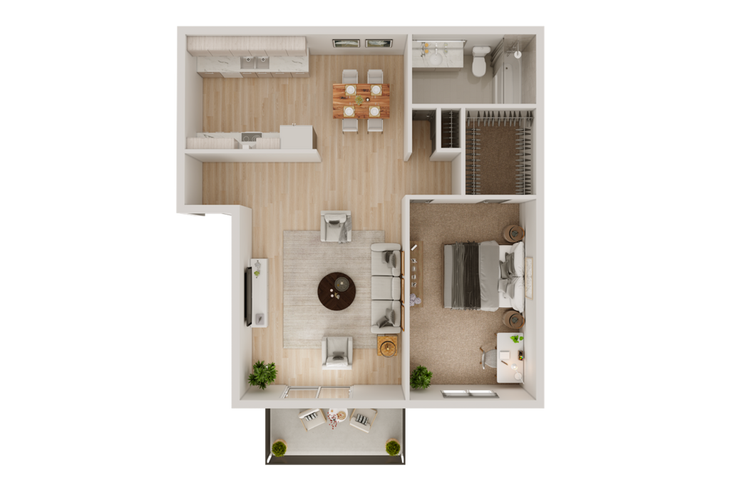 1 Dormitorio, 1 Baño, 676 pies²Disponible Oct 13Galería del Modelo