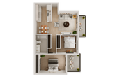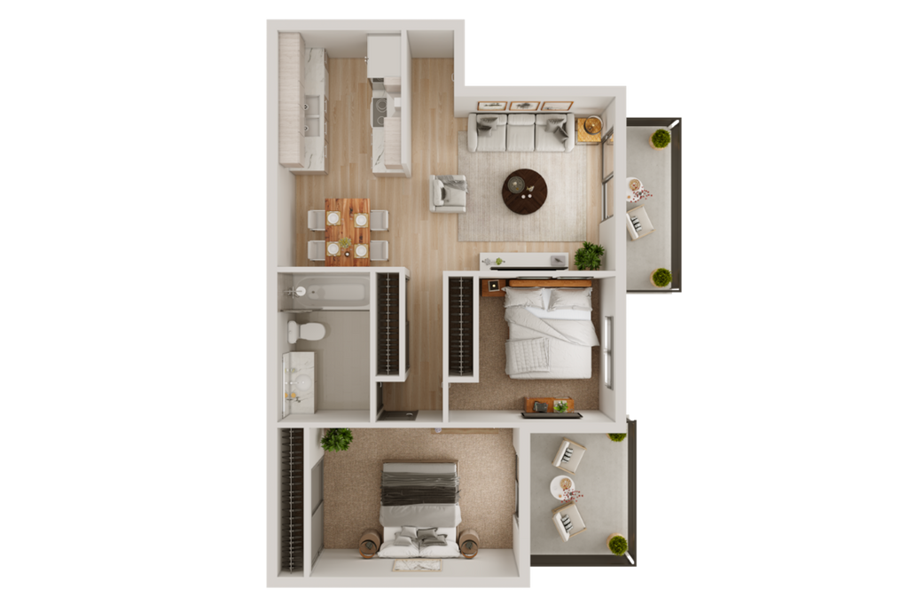 2 Dormitorios, 1 Baño, 840 pies²Disponible AhoraGalería del Modelo