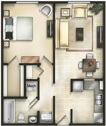 1 bed / 1 bath flat 777 sqft at Rolling Hills R... - Plano 1 2 Dormitorios