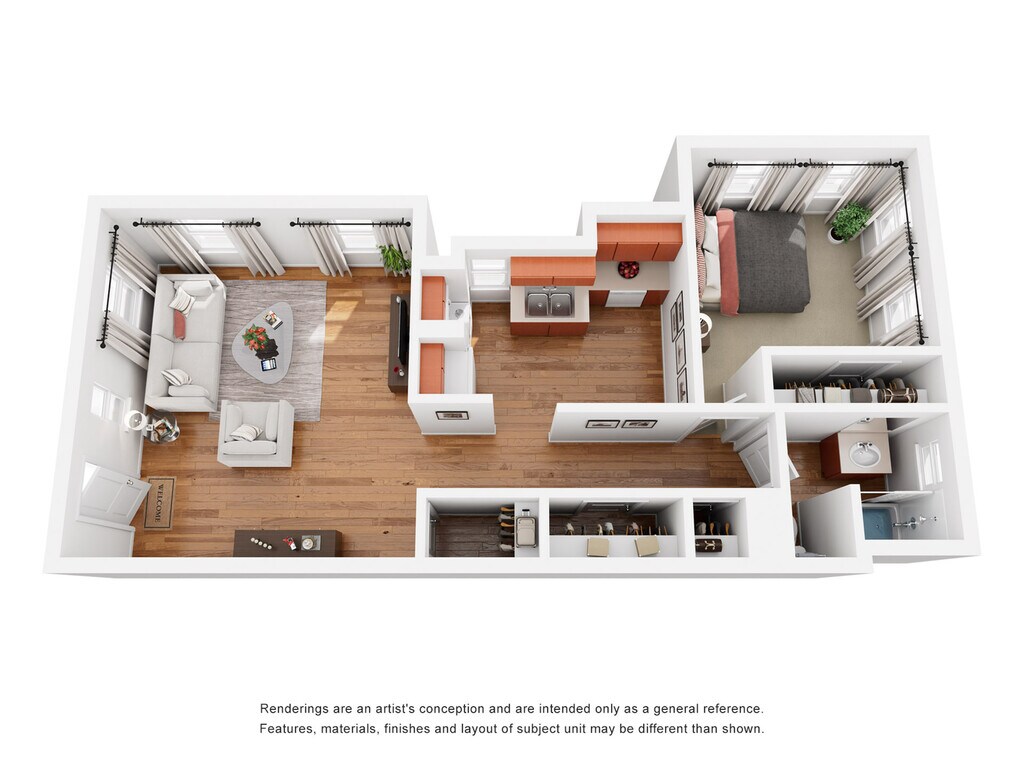 1 Dormitorio, 1 Baño, 684 pies²Galería del Modelo
