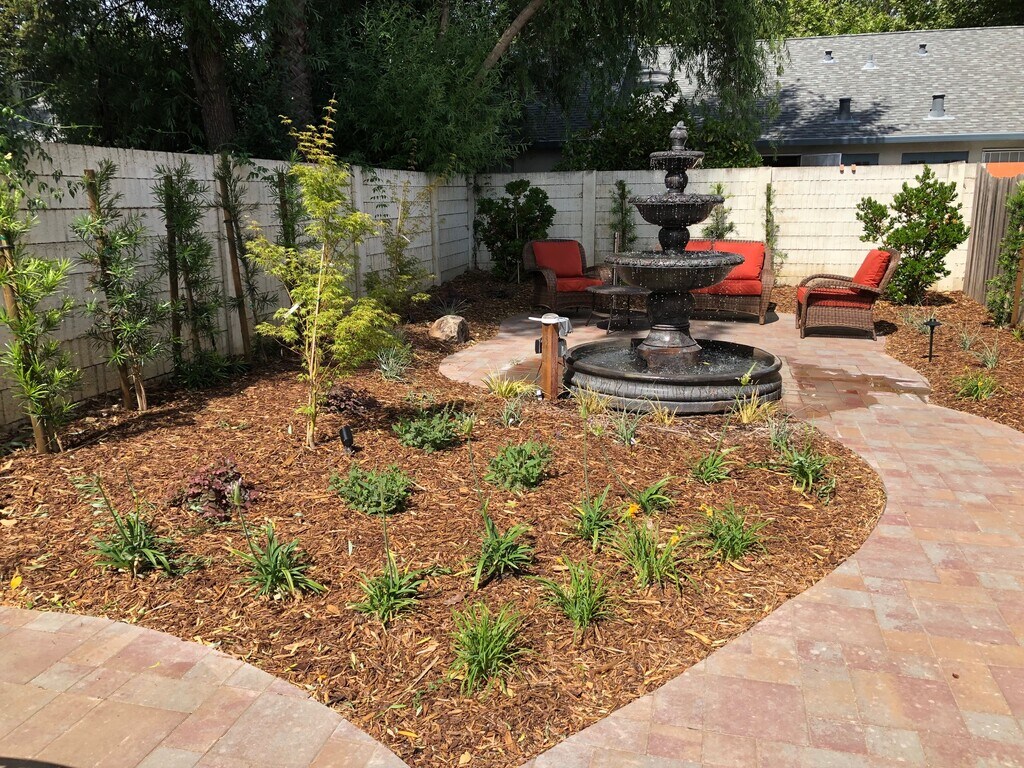 - Área de descanso al aire libre con fuentes.