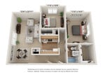 2 Dormitorios, 1 Baño, 869 pies²Precio Mensual TotalDisponible AhoraGalería del Modelo