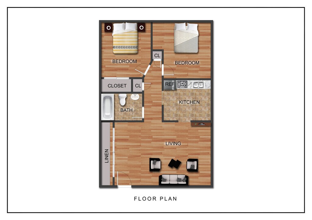 Modelo de apartamento: 2 Bedroom A2 Dormitorios, 1 Baño, 640 sq ftDisponible February 1, 2026![]()