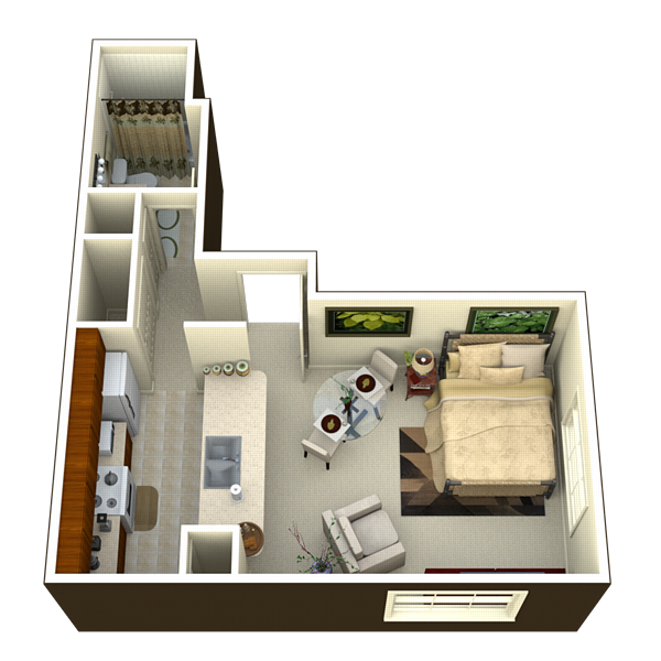 Estudio, 1 Baño, 500-550 pies²Precio Mensual TotalDisponible AhoraGalería del Modelo