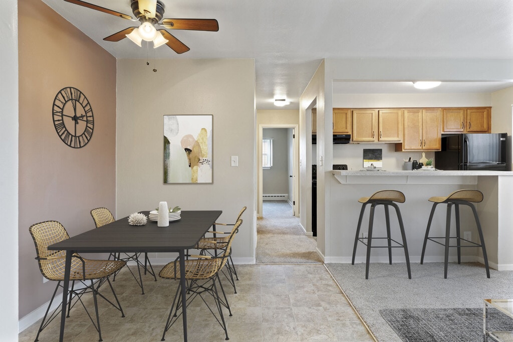 July 24, 2015The grounds here are beautiful with lush grass that is well watered, flowers and bushes in front of the town houses and apartment buildings. The maintenance crew is very friendly and takes care of maintenance requests very quickly, some times even the same day. The staff is also very friendly and very patient. The pool is very nice, if a little shallow, it only goes to 5 feet. The town homes are very comfortable if you are ok with a small kitchen and bathroom. Other than that the rooms are a ...very nice size and there is plenty of closet space and a nice large storage area. Either I have very quiet neighbors or the walls are nice and thick as I only hear them occasionally and very faintly at that. The carpets are nice, not fantastic to look at but plush and comfortable to walk or sit on. The major flaw of the town house is the heating system which pumps out heat irregularly to different sections of the house. At times my room would be 10 degrees hotter than the rest of the apartment. The neighborhood is also very lovely. Its located 10 minutes by car from most shops: target, barnes and noble, staples, kohl's ect. Its also right across the street from Cub and is a few minutes walk from Caribou and a few restaurants which is very handy. I've only ever had a few incidents with house centipedes and a spider or two which can't really be prevented. Other than that there has been no noticeable pest problem which. The few flaws are more then made up for by the rest of the apartments pluses.Leer MásReseña de Apartments.com