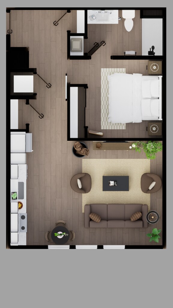 1 Dormitorio, 1 Baño, 665 pies²Disponible AhoraGalería del Modelo