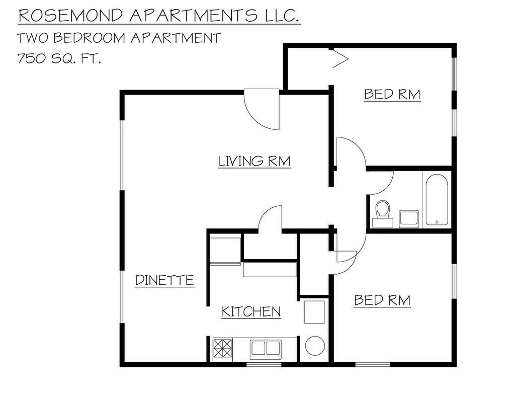 2 Dormitorios, 1 Baño, 750-850 pies²Galería del Modelo