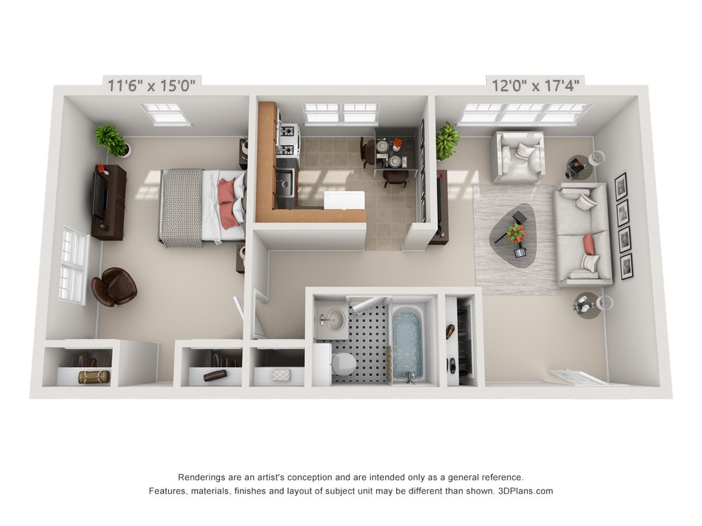 Estudio, 1 Baño, 375 pies²Disponible AhoraGalería del Modelo
