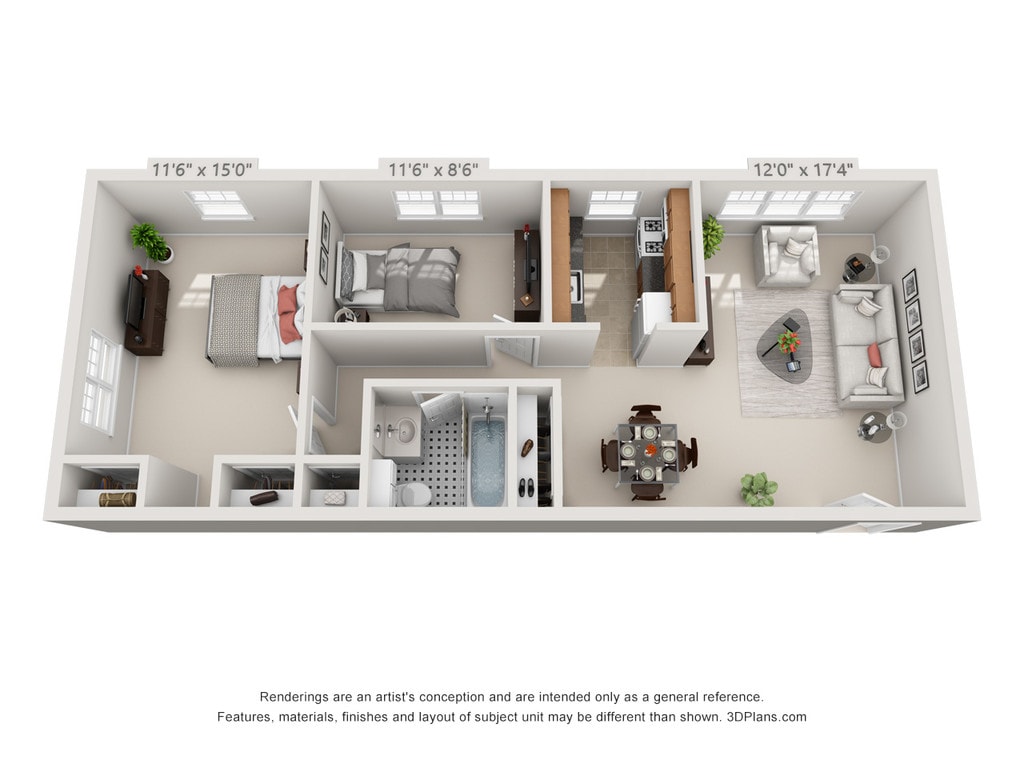 2 Dormitorios, 1 Baño, 750 pies²Disponible AhoraGalería del Modelo