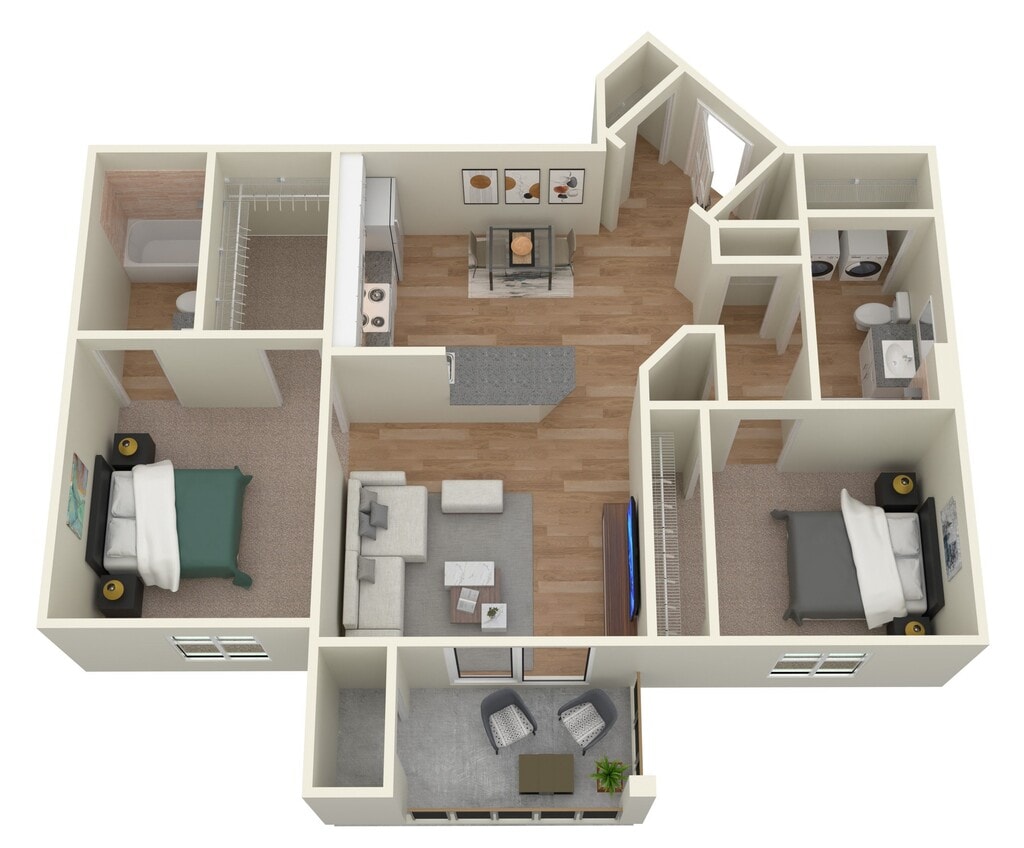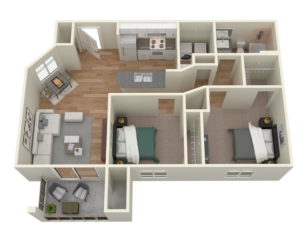 2 Dormitorios, 1 Baño, 828 pies²Disponible AhoraGalería del Modelo