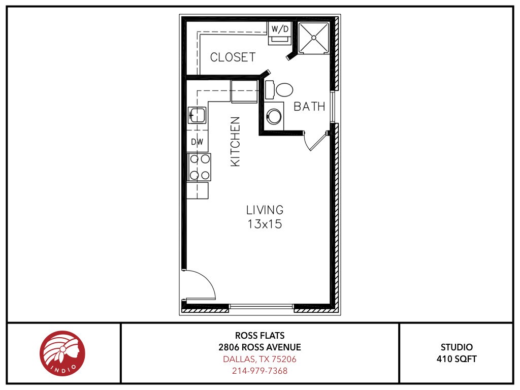 Estudio, 1 Baño, 410 pies²Disponible AhoraGalería del Modelo
