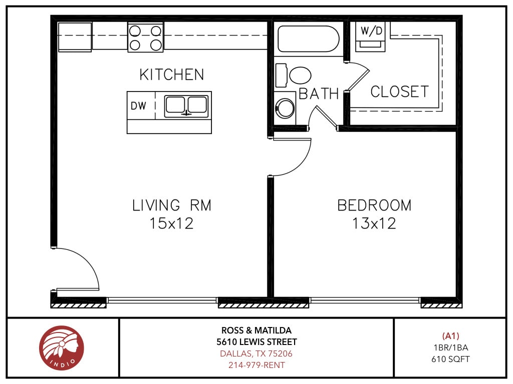 Modelo de apartamento: #A1Desde $1,1951 Dormitorio, 1 Baño, 610 sq ftDisponible AhoraPlanosFotos![]()