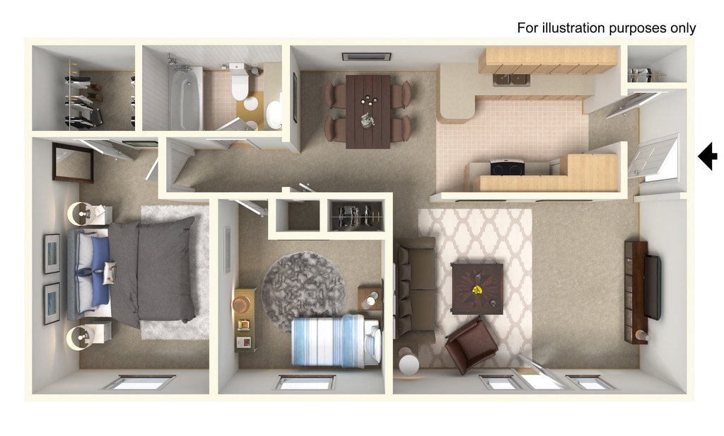 Modelo de apartamento: Two Bedroom$9752 Dormitorios, 1 Baño, 850 sq ftDisponible December 26, 2025Two Bedroom - Plano 1 Unidad de apartamento: 91-98Modelo de apartamento: Two Bedroom$9752 Dormitorios, 1 Baño, 850 sq ftDisponible December 26, 2025Townhome