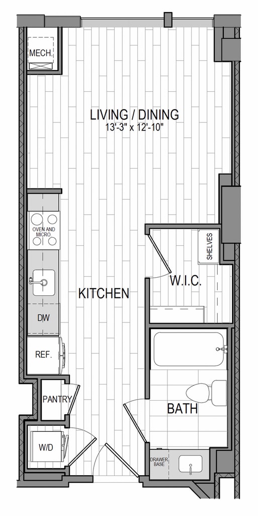 Modelo de apartamento: STUDIO HANDICAP ACCESSIBLEDesde $2,435Estudio, 1 Baño, 660 sq ftNo DisponibleSTUDIO HANDICAP ACCESSIBLE - Plano 1 1 Dormitorio