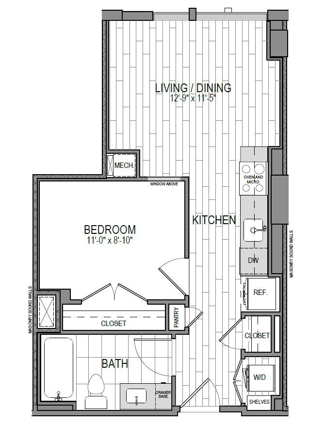 STUDIO - Plano 1 Unidad de apartamento: Residential-1548Modelo de apartamento: STUDIO$2,395Estudio, 1 Baño, 365 sq ftDisponible Ahora![]()