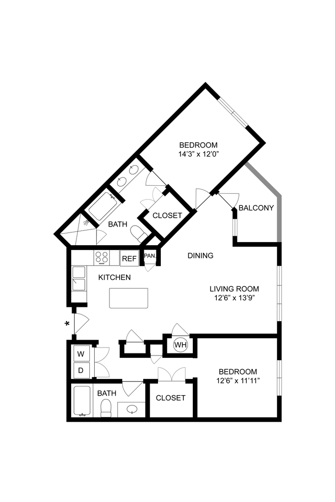 Modelo de apartamento: A1DDesde $1,6801 Dormitorio, 1 Baño, 896 sq ftDisponible Ahora![]()