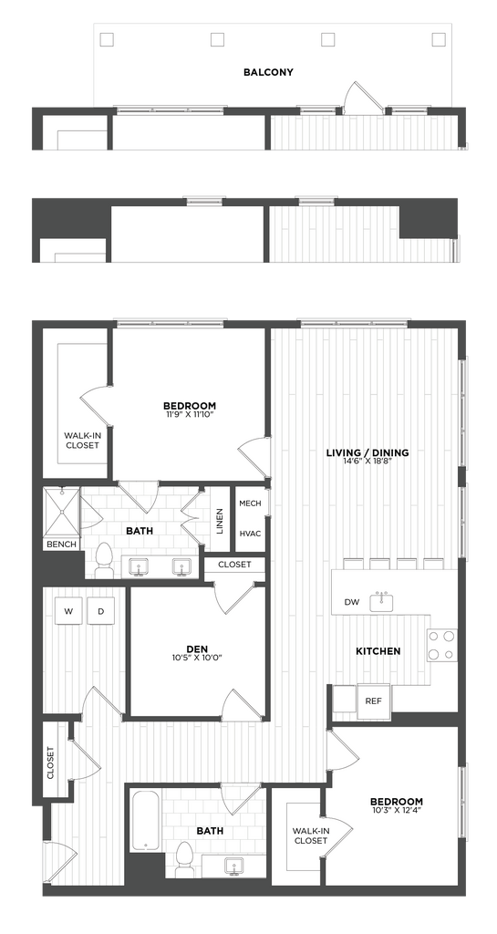 Modelo de apartamento: 1 Bed/1 Bath Den-AD1Desde $2,9251 Dormitorio, 1 Baño, 890 sq ftDisponible Ahora![]()