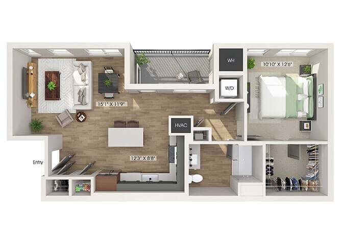 Modelo de apartamento: A3Desde $1,8951 Dormitorio, 1 Baño, 781 sq ftDisponible January 20, 2026![]()