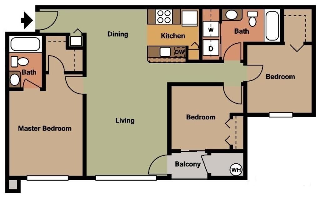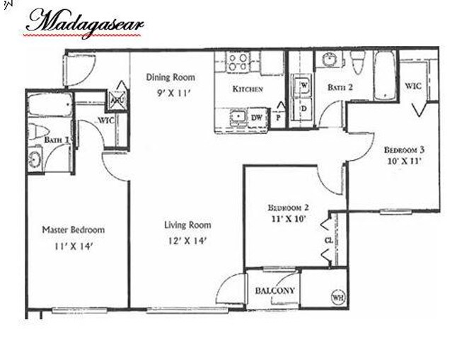 Modelo de apartamento: Three Bedroom3 Dormitorios, 2 Baños, 1102 sq ftNo Disponible![]()