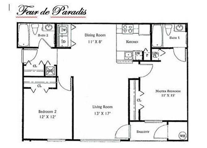 Modelo de apartamento: Two Bedroom2 Dormitorios, 2 Baños, 853 sq ftNo Disponible![]()