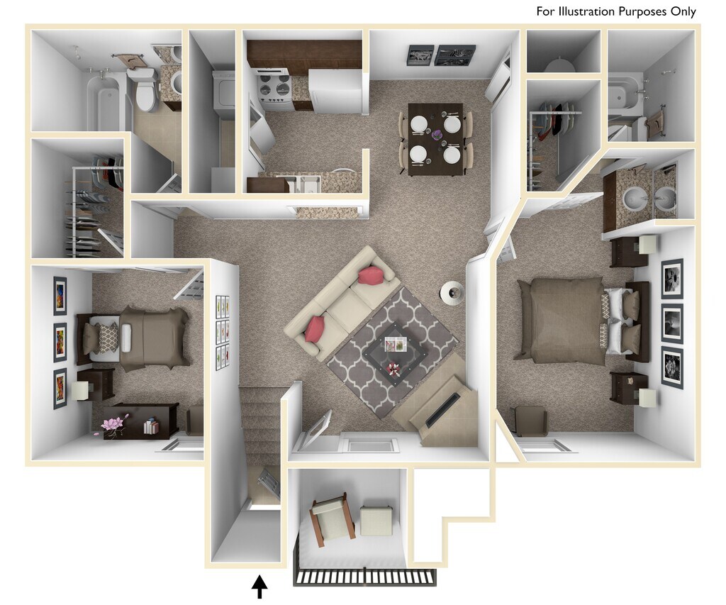 1 Dormitorio, 1 Baño, 720 pies²Disponible AhoraEl más grandeEsta opción tiene las unidades más grandes para este modeloGalería del Modelo
