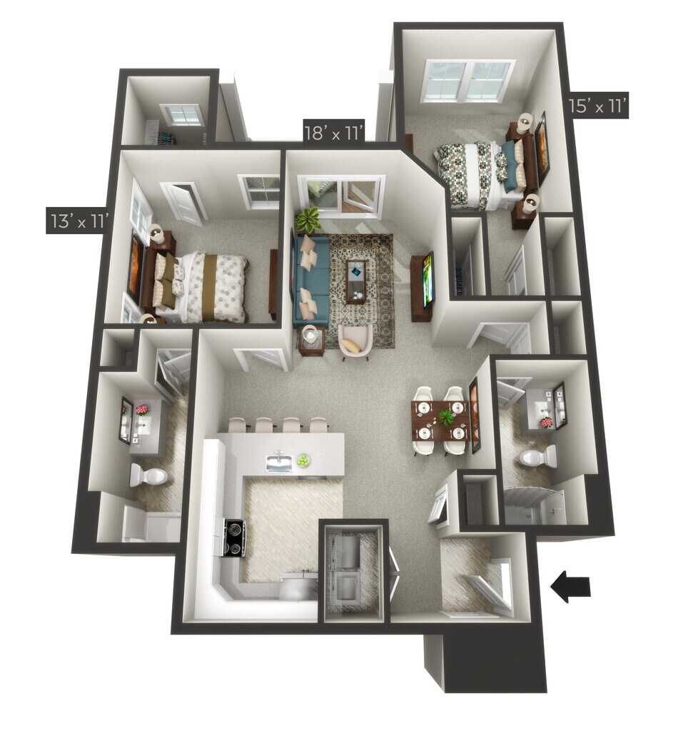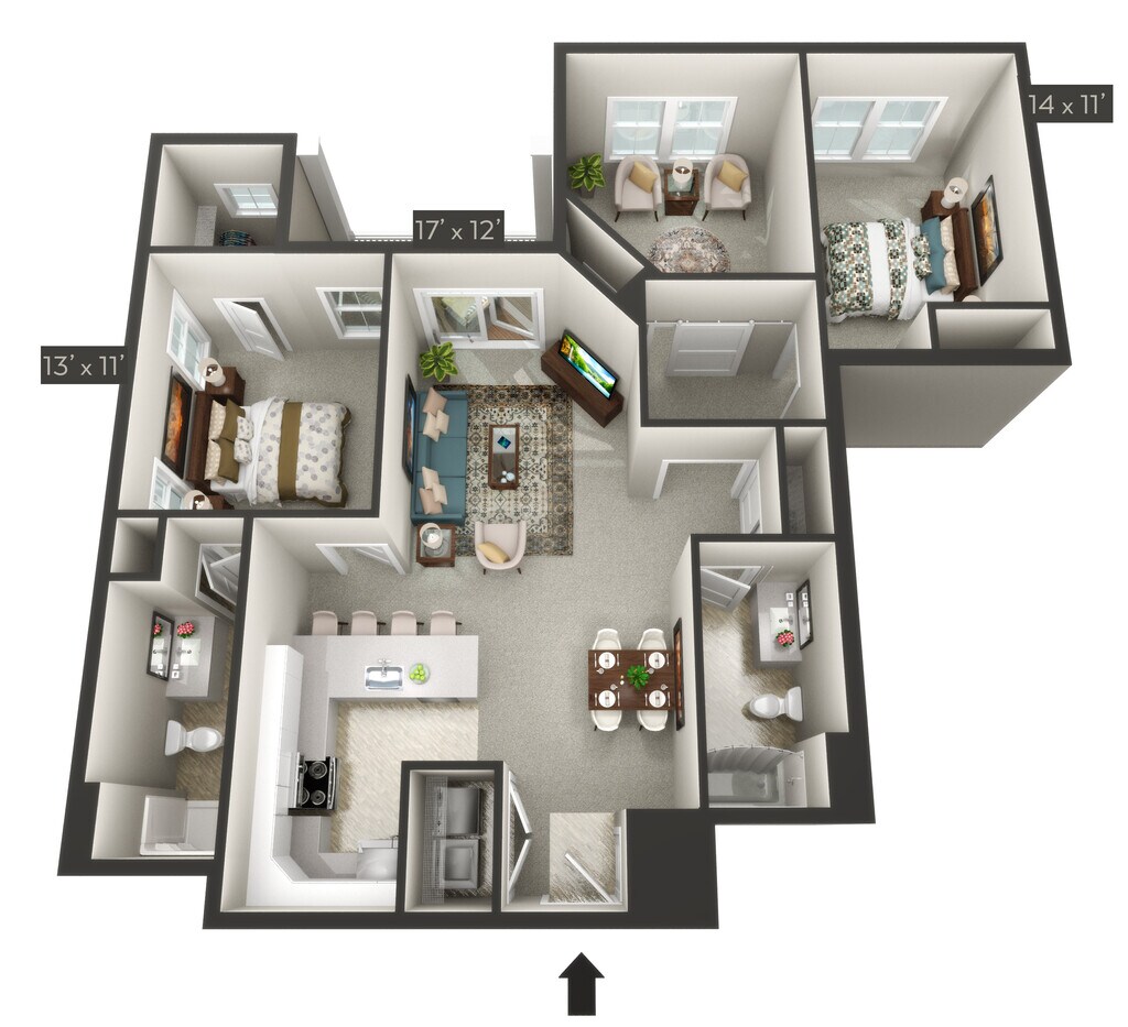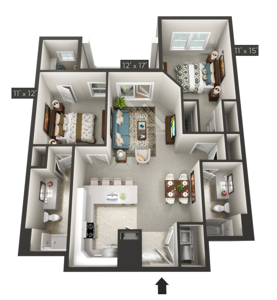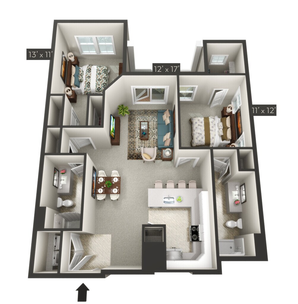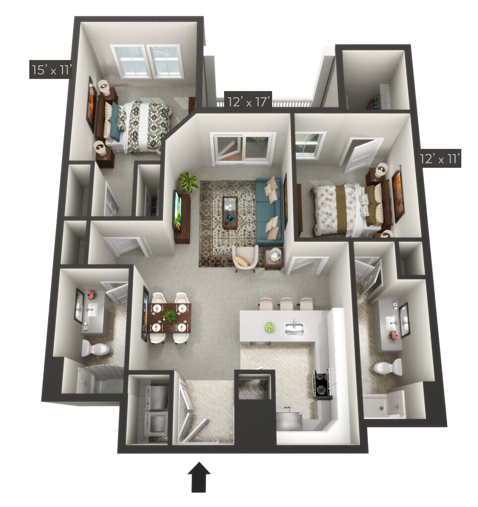 Modelo de apartamento: KetchDesde $1,8452 Dormitorios, 2 Baños, sq ftDisponible Ahora![]()