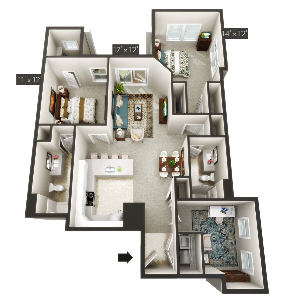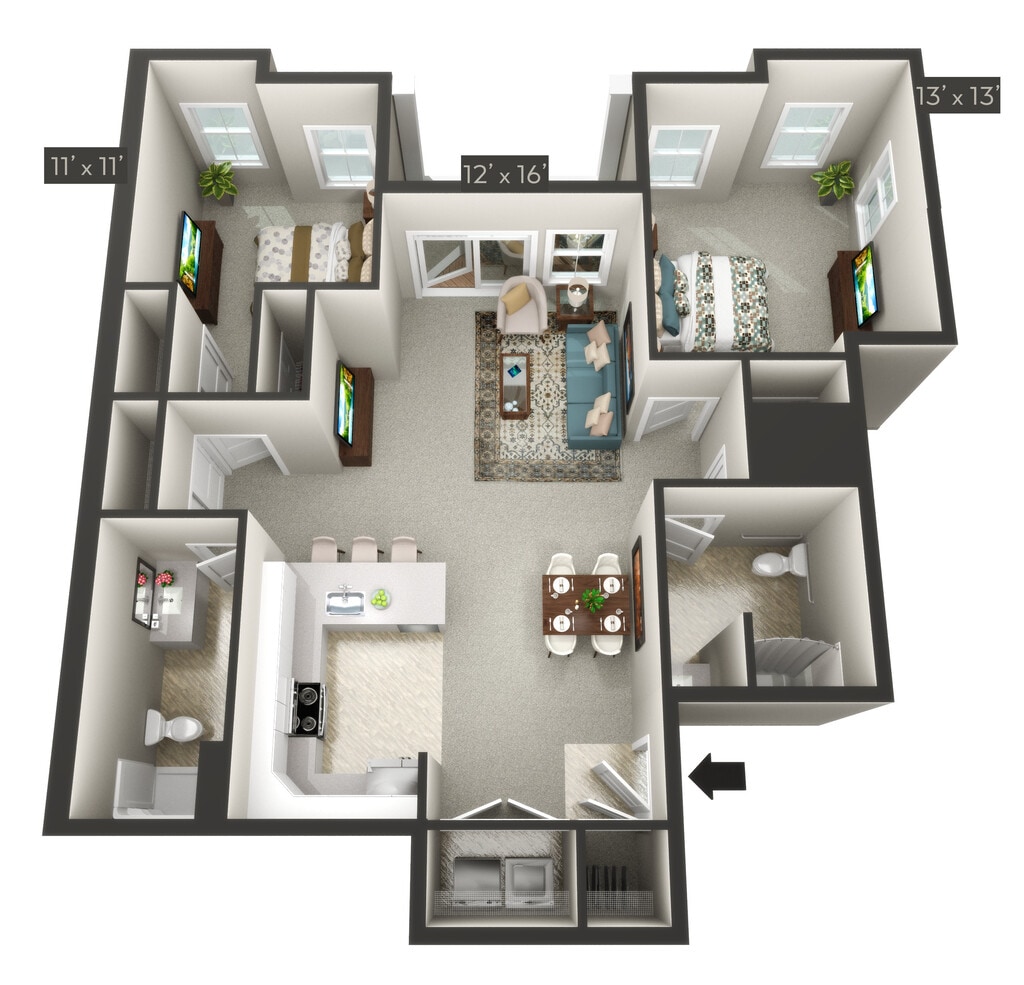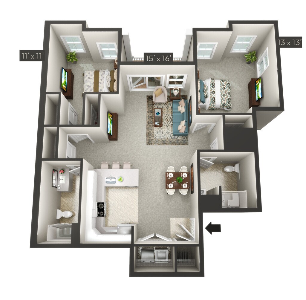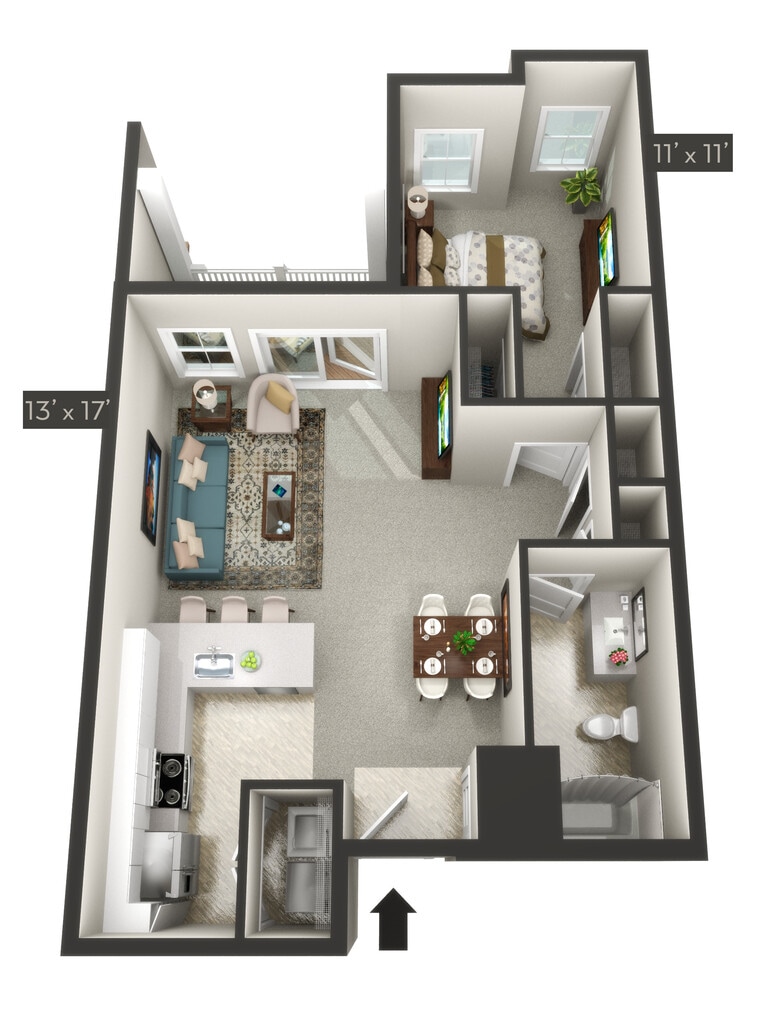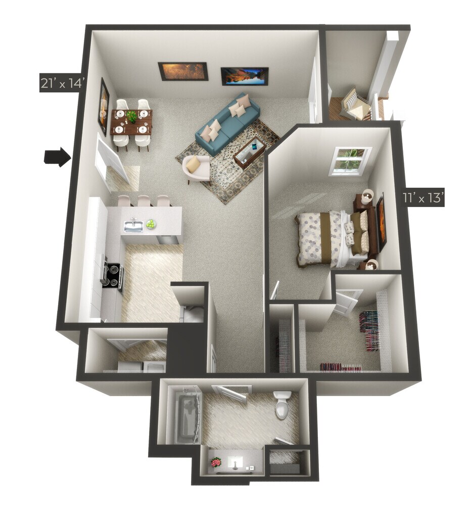 Modelo de apartamento: FreedomDesde $1,7001 Dormitorio, 1 Baño, sq ftNo Disponible![]()