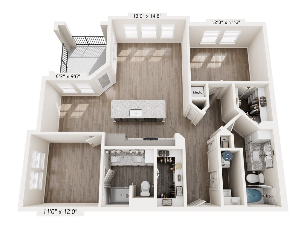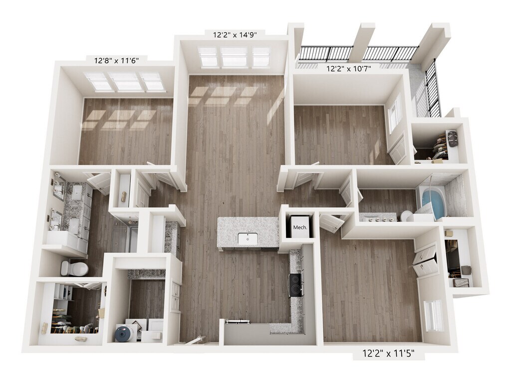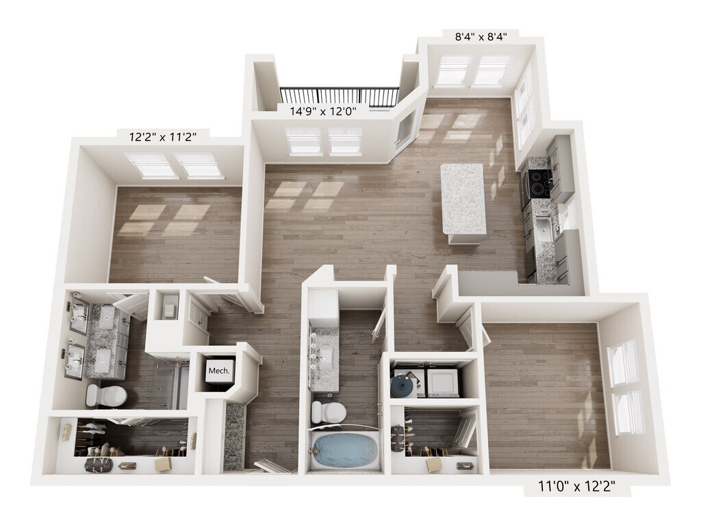 Modelo de apartamento: A7Desde $1,7141 Dormitorio, 1 Baño, 1072 sq ftDisponible January 2, 2026![]()