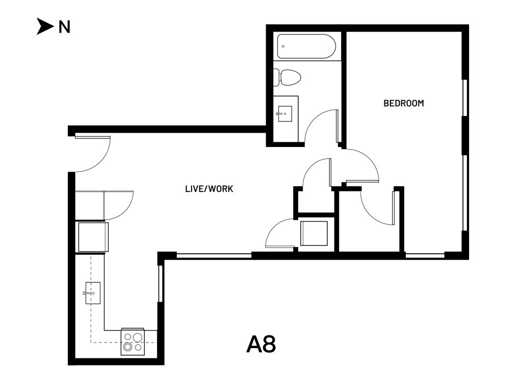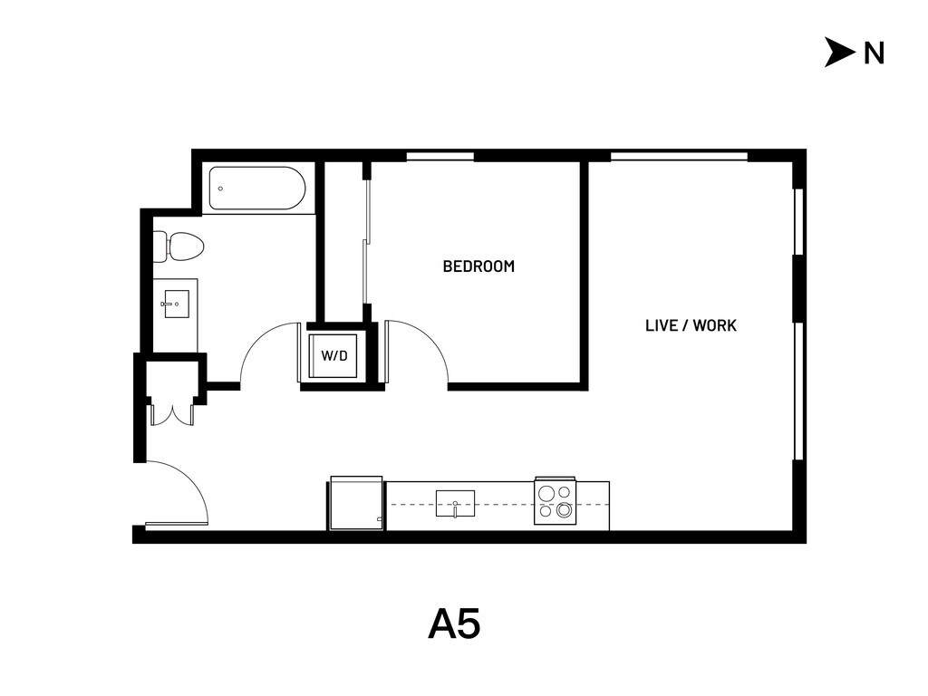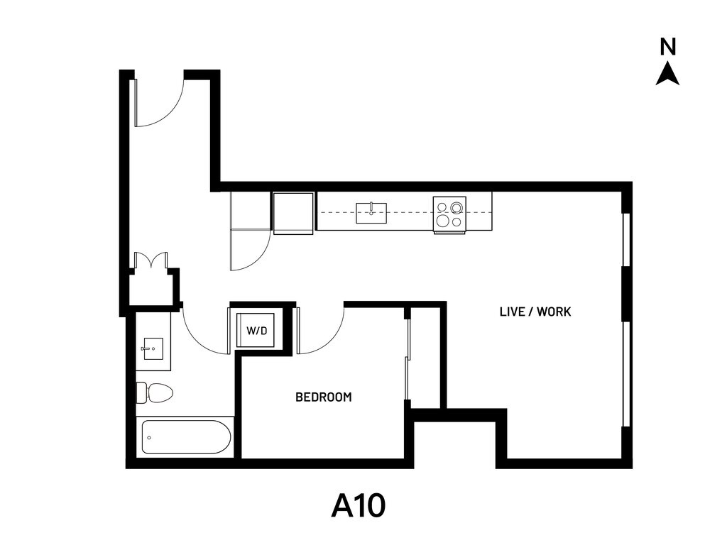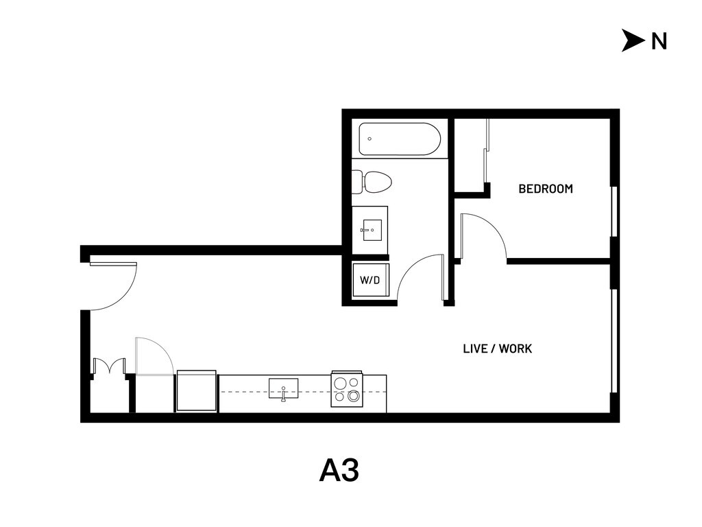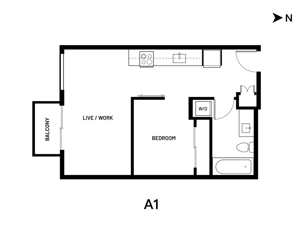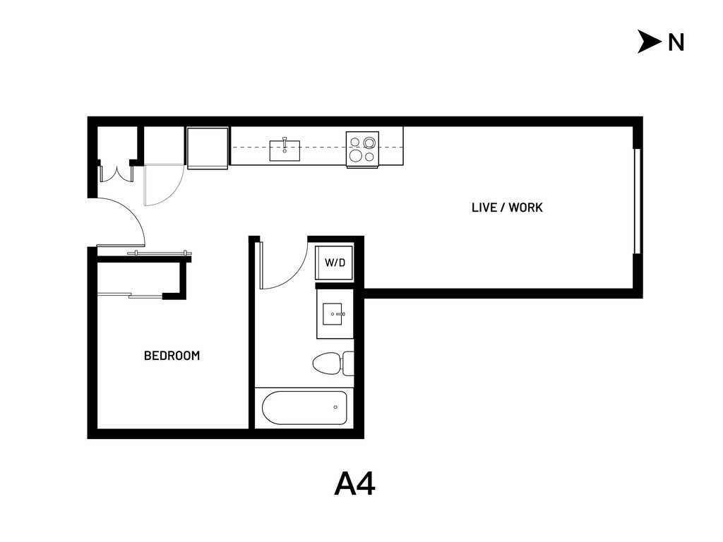 Open 1 Bed A4 - Plano 1 Los planos de la planta son una interpretación artística. Todas las dimensiones son aproximadas. Los tamaños o el detalle del producto real y sus especificaciones pueden variar. No todas las características están disponibles en todos los hogares para rentar. Los precios y la disponibilidad están sujetos a cambios. El alquiler que se muestra es mensual. Se pueden aplicar ciertos cargos, por ejemplo, entrega de paquetes, recolección de basura, agua, servicios, etc. Depositos varian. Consulta a un representante para conocer detalles.