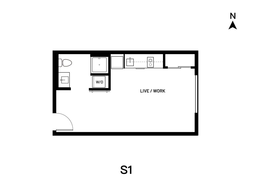 Studio S1 - Plano 1 Los planos de la planta son una interpretación artística. Todas las dimensiones son aproximadas. Los tamaños o el detalle del producto real y sus especificaciones pueden variar. No todas las características están disponibles en todos los hogares para rentar. Los precios y la disponibilidad están sujetos a cambios. El alquiler que se muestra es mensual. Se pueden aplicar ciertos cargos, por ejemplo, entrega de paquetes, recolección de basura, agua, servicios, etc. Depositos varian. Consulta a un representante para conocer detalles.