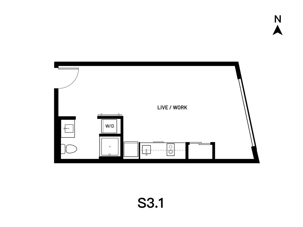 Studio S3.1 - Plano 1 Los planos de la planta son una interpretación artística. Todas las dimensiones son aproximadas. Los tamaños o el detalle del producto real y sus especificaciones pueden variar. No todas las características están disponibles en todos los hogares para rentar. Los precios y la disponibilidad están sujetos a cambios. El alquiler que se muestra es mensual. Se pueden aplicar ciertos cargos, por ejemplo, entrega de paquetes, recolección de basura, agua, servicios, etc. Depositos varian. Consulta a un representante para conocer detalles.