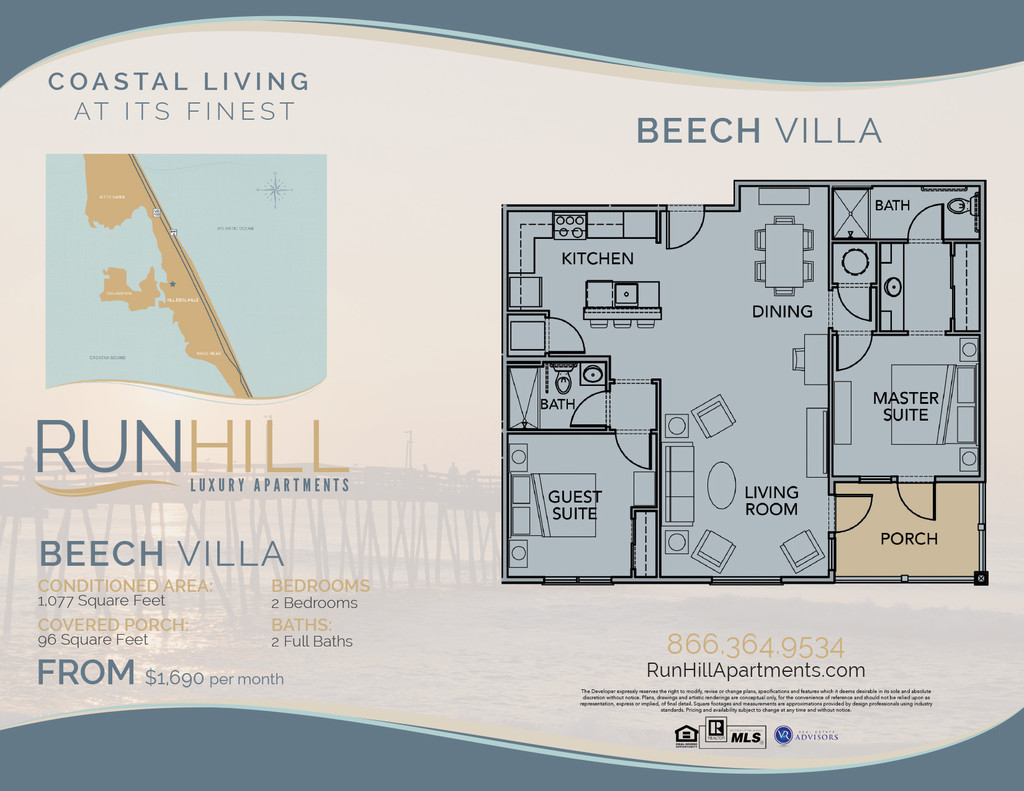Presentamos Run Hill Luxury Apartment Villas, el Outer Banks’ primer complejo de apartamentos de lujo que cuenta con un estilo de vida informal y elegante alojamiento con una gran variedad de comodidades de primera clase. Ubicado en el corazón de los Outer Banks, el complejo se basa en el enriquecimiento de tres preciosas comodidades locales – momento, seguridad y tranquilidad. Run Hill ofrece un sinfín de posibles para viajes, placer, gimnasio, nuevos pasatiempos y nuevos amigos, mientras que el servicio de catering a un estilo de vida activo, lo que te permite vivir tu vida al máximo, sin las molestias de ser el propietario de una casa. La visión de Run Hill fue inspirado por el Outer Banks' estilo de vida en sí mismo: una filosofía de próspero complejo espíritu con innumerables oportunidades para la interacción social y la realización personal en un ambiente tranquilo rodeado de belleza natural en cada esquina. Island la vida en tu máxima expresión, pero con todos los lujos construido en para un fácil, una vida elegante. Run Hill Luxury Apartment Villas ofrece un estilo de vida informal y elegante alojamiento con una gran variedad de comodidades de primera clase, Run Hill es un ejemplo de un conveniente, la vida en la costa de lujo sin necesidad de mantenimiento. Cada villa está construido de acuerdo con los estándares más altos de materiales de construcción. A continuación encontrarás una lista breve de algunas de las características que podrás ver en tu nuevo apartamento: • Pasillos edificio con control de temperatura • Acceso de entrada controlado • Internet de alta velocidad Acceso por elevador a cada nivel • Vestíbulos de entrada de gran tamaño • Livable los diseños con planos de planta abiertos • Todos los planos de planta ofrecen un "Apartamento en esquina" Siéntase como para mayor privacidad • Amplias Patios o balcones cubiertos • Información detallada de Mill los trabajos arquitectónicos en todo el apartamento • Cocinas de diseñador con gabinetes de lujo, Encimeras de cuarzo, y electrodomésticos de acero inoxidable • Lavadora y secadoras incluidas en cada residencia • bien equipadas en los baños principales • Pisos LVT de estilo de madera noble • Productos de insonorización utilizada en cada Plano de planta • Techos de 9 ft • Espacio de garaje disponible por un cargo adicional mensuales (disponibilidad limitada) • Sin ascensor Áreas de almacenaje disponibles por un cargo adicional mensuales (disponibilidad limitada)