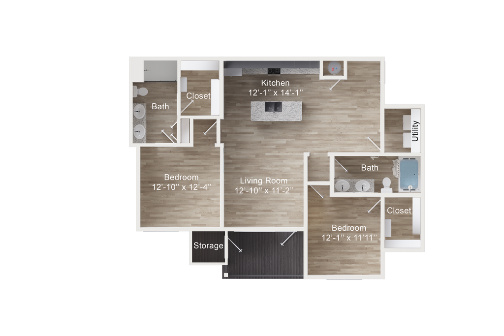 Modelo de apartamento: A1$1,1251 Dormitorio, 1 Baño, 727 sq ftDisponible Ahora![]()