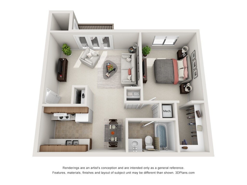 1 Dormitorio, 1 Baño, 720 pies²Disponible AhoraGalería del Modelo