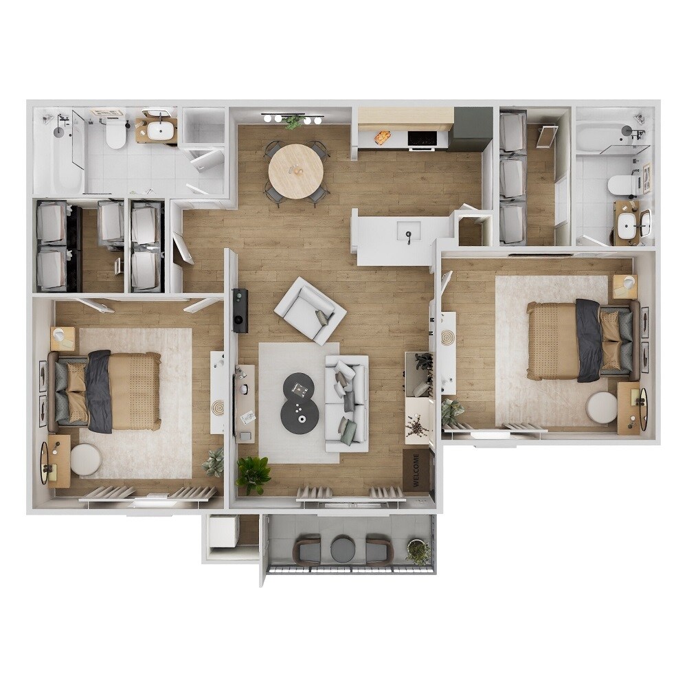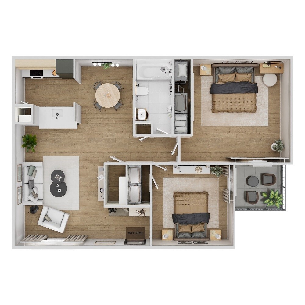 2 Dormitorios, 2 Baños, 900 pies²Disponible AhoraGalería del Modelo
