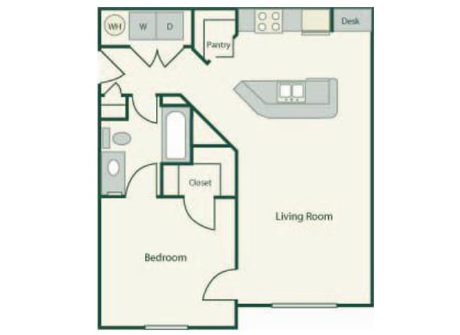 Modelo de apartamento: 1 Bed/1 Bath1 Dormitorio, 1 Baño, 705 sq ftNo Disponible![]()