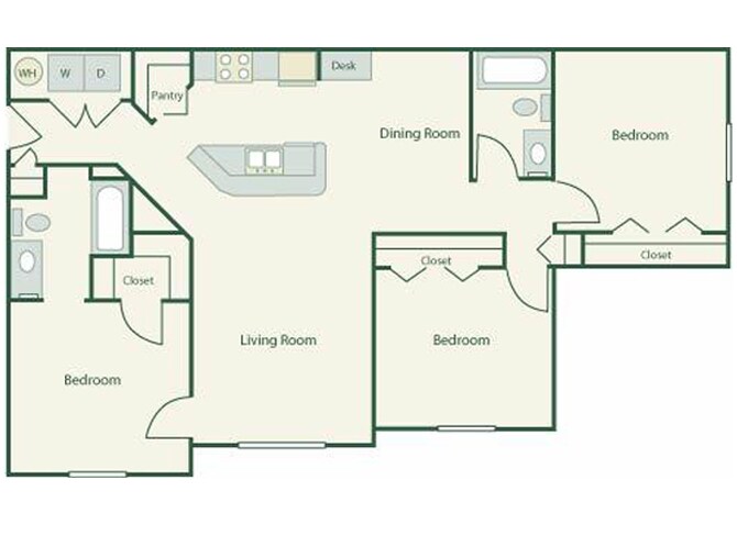 Modelo de apartamento: 3 Bed/2 Bath3 Dormitorios, 2 Baños, 1218 sq ftNo Disponible![]()
