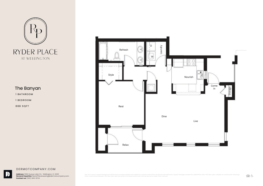 1 Dormitorio, 1 Baño, 888 pies²Disponible AhoraGalería del Modelo