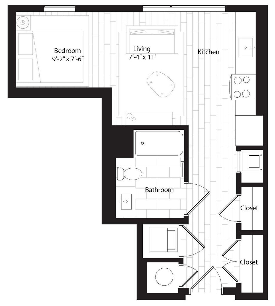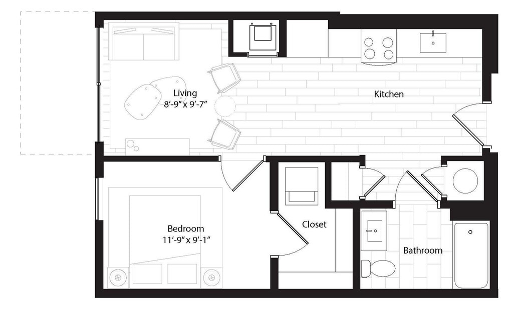 Estudio, 1 Baño, 492 pies²Precio Mensual TotalDisponible AhoraEl más grandeEsta opción tiene las unidades más grandes para este modeloGalería del Modelo