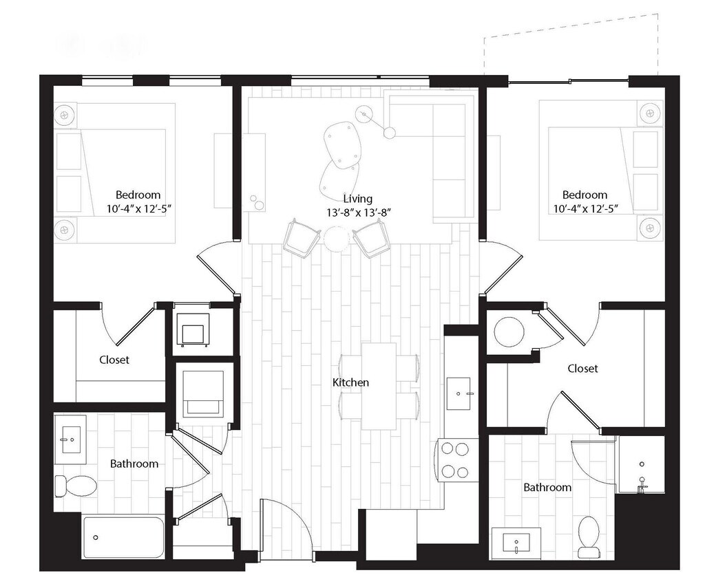 2 Dormitorios, 2 Baños, 888 pies²Galería del Modelo