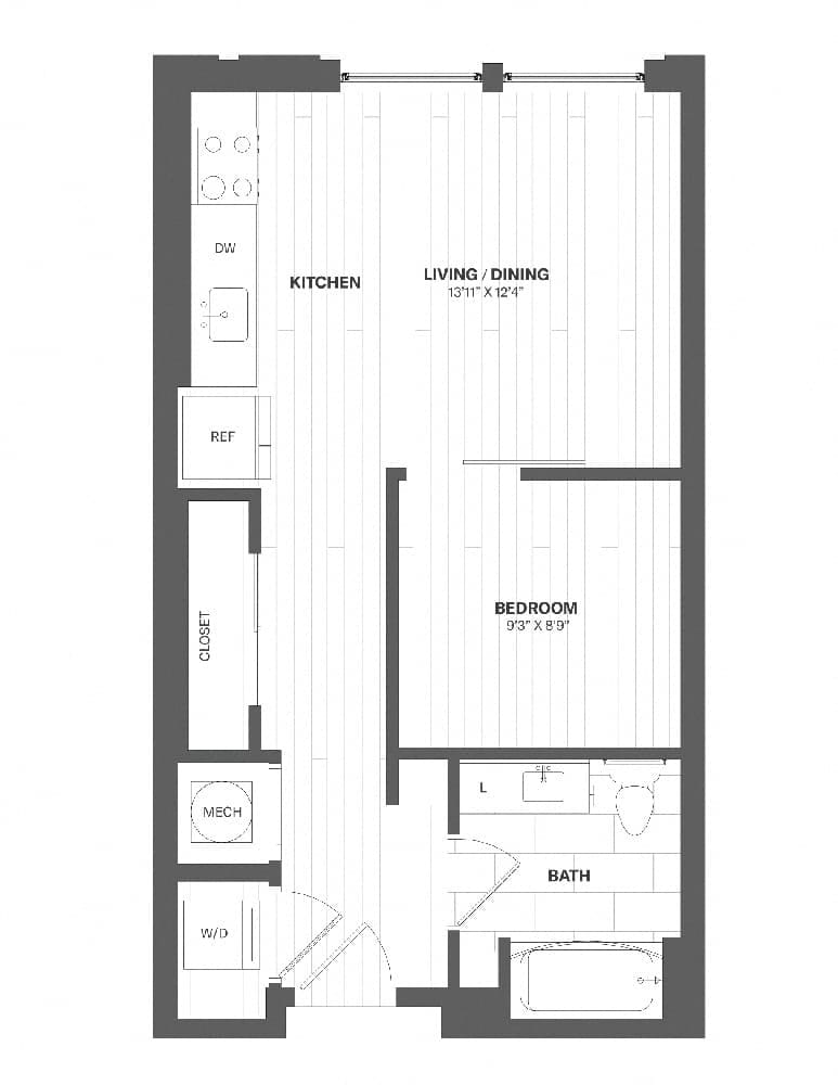 1 Dormitorio, 1 Baño, 632 pies²Disponible AhoraGalería del Modelo