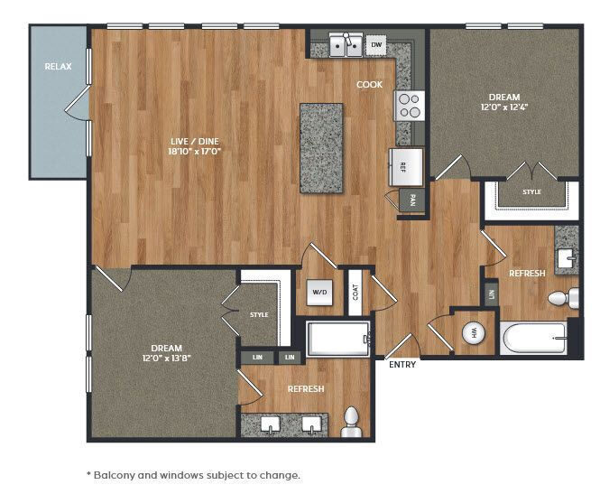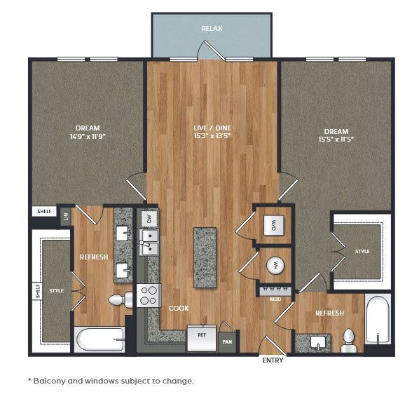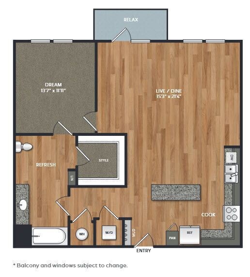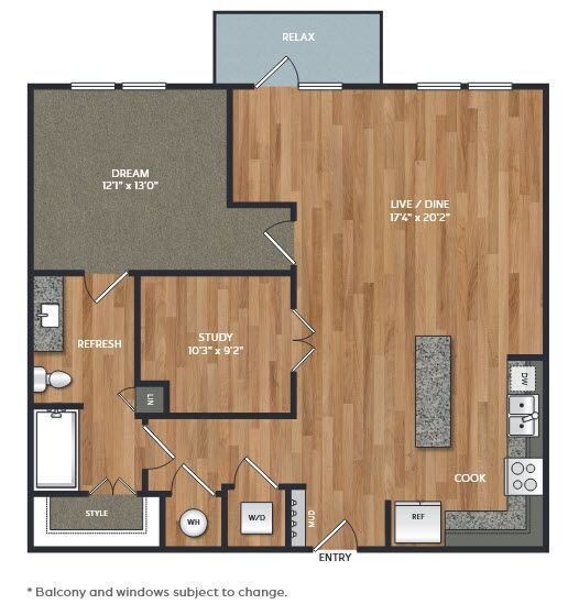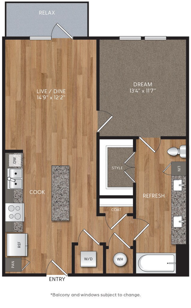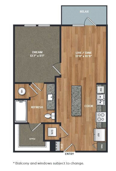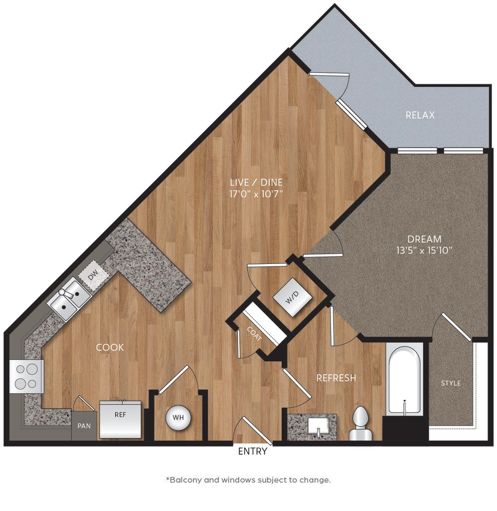 Modelo de apartamento: E1Desde $1,199Estudio, 1 Baño, 540 sq ftDisponible Ahora![]()