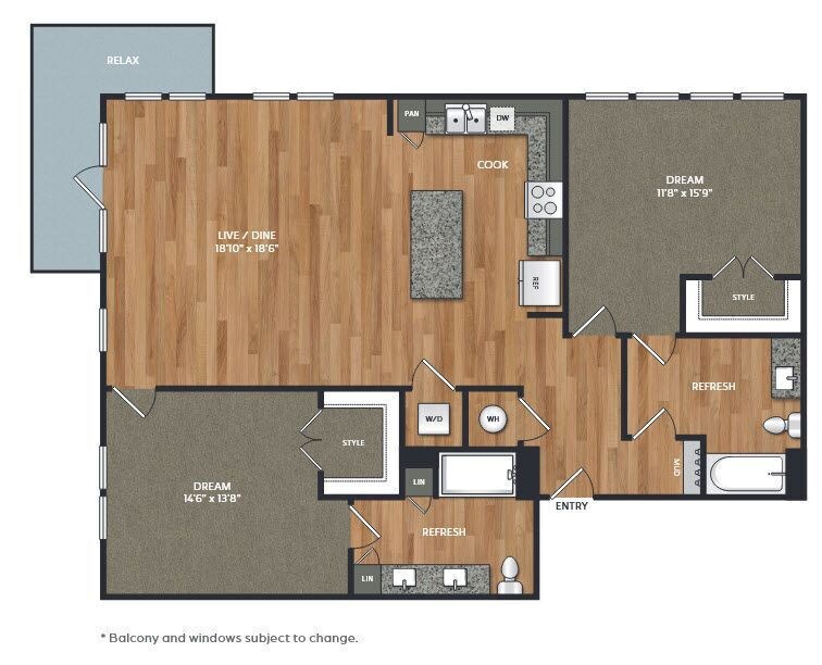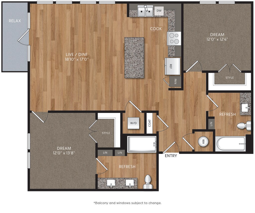 Modelo de apartamento: E2Desde $1,300Estudio, 1 Baño, 616 sq ftDisponible Ahora![]()