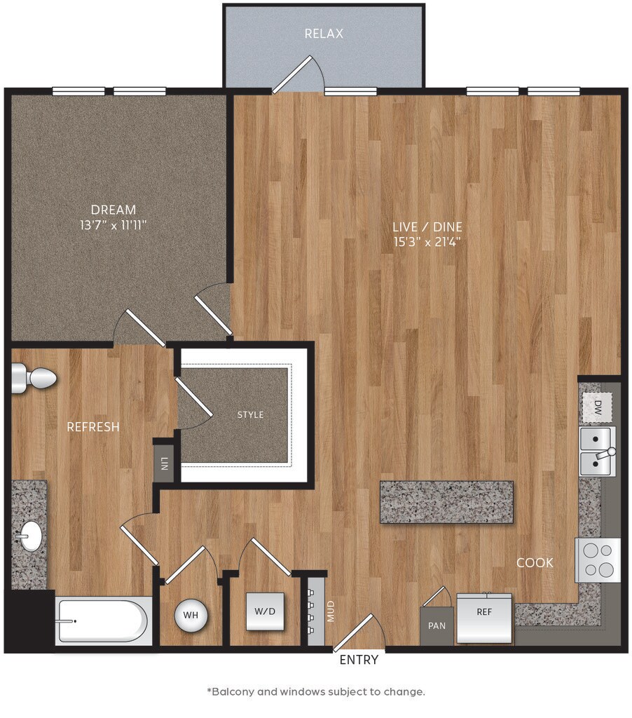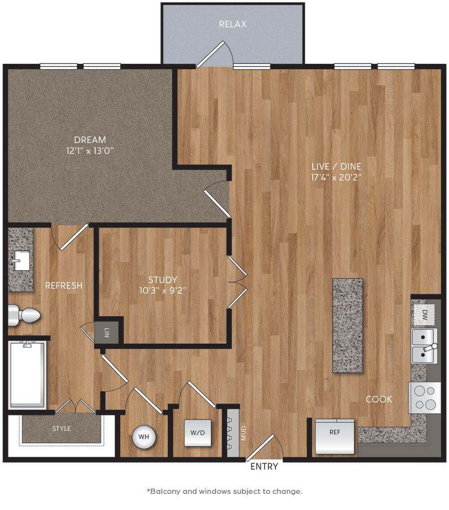 Estudio, 1 Baño, 616 pies²Disponible AhoraGalería del Modelo