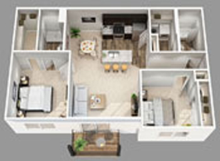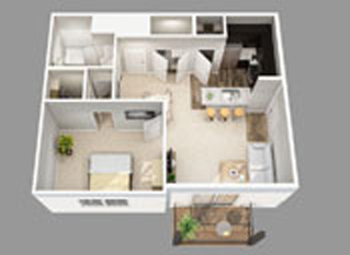 1 Dormitorio, 1 Baño, 720 pies²Disponible AhoraGalería del Modelo