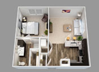 1 Dormitorio, 1 Baño, 610 pies²Disponible AhoraGalería del Modelo