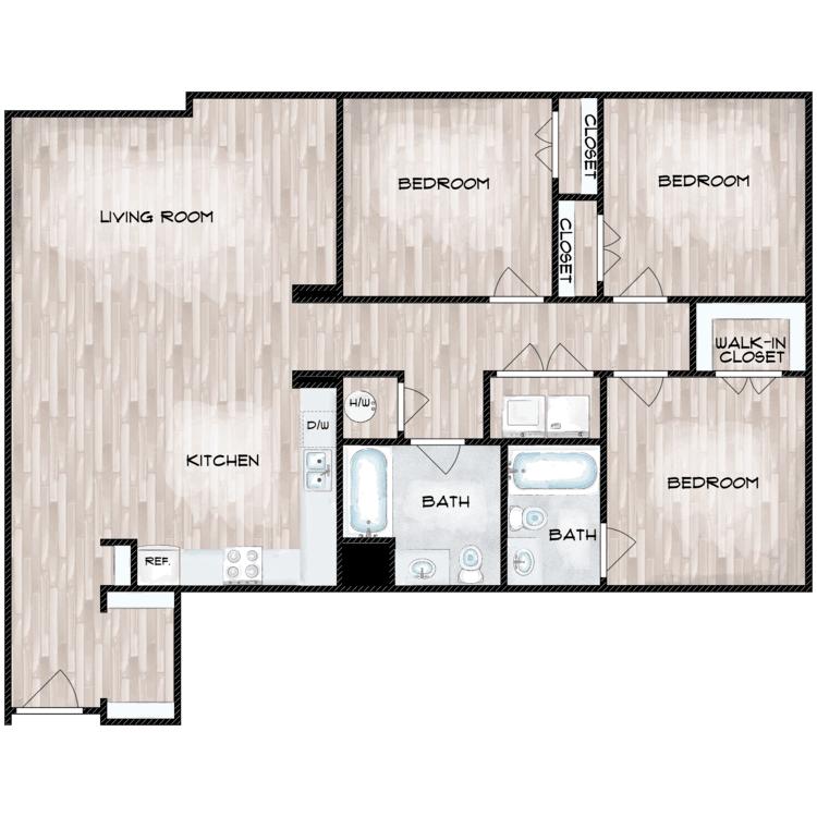 3 Dormitorios, 1 Baño, 1285 pies²El más grandeEsta opción tiene las unidades más grandes para este modeloGalería del Modelo